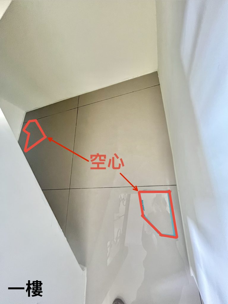 #磁磚空心,因天氣冷縮熱脹導致破裂,明天請了磁磚師傅來修理,我明天又要請假了….