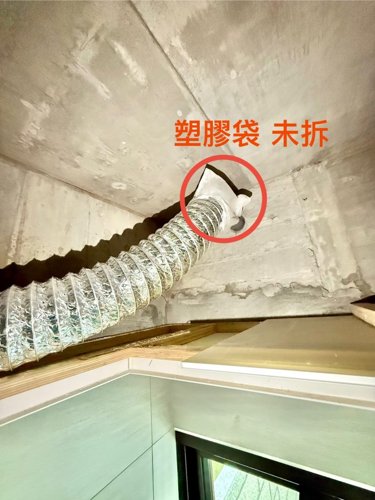 9. ❌排風管塑膠袋未除